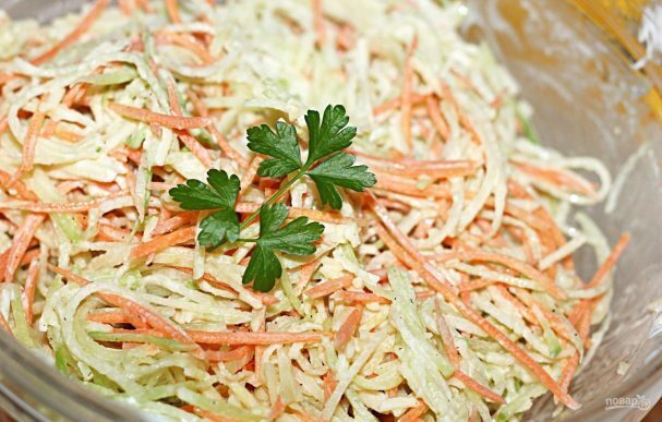 Редьку, морковь, яблоко тщательно вымыть, очистить, снова вымыть и натереть на мелкой тёрке. Массу равномерно перемешать. Добавить измельчённый чеснок и цедру. Сок лимона выжать в салат, вновь перемешать, чуть-чуть посолить.