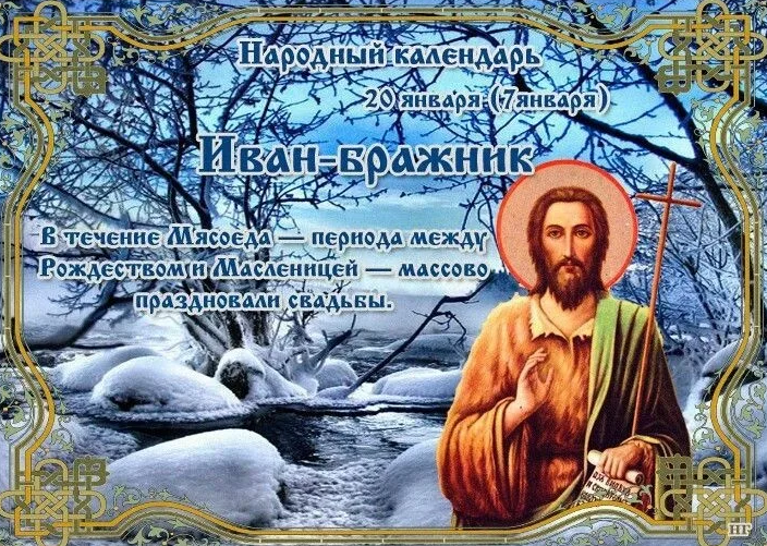 Святки подошли к концу. По этому поводу говорили: «Иван Блаженный все праздники увел». С 20 января и до Масленицы играли свадьбы и зазывали сватов. Если на 20 января 2022 года приходится свадьба или сватовство, невесте нужно выпить немного вина, чтобы брак был благополучным.