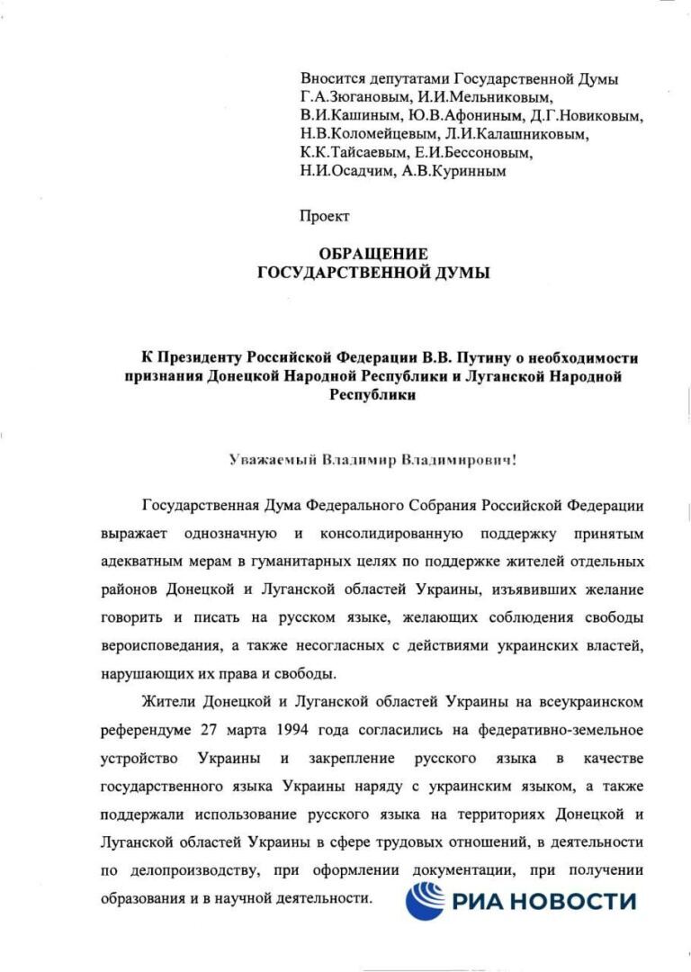 Тут речь не о присоединении, а о создании отдельных государств ДНР и ЛНР.
