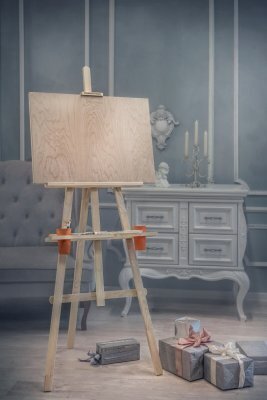 Стоит, задумавшись, мольберт,