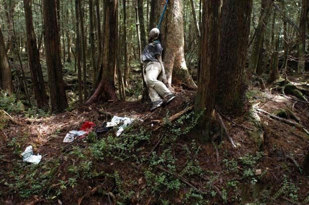 Из Токио и многих других городов, жители Страны восходящего солнца приезжают, чтобы повеситься, отравиться или вскрыть себе вены. Ниже представлены фотографии этой аномальной зоны, под названием лес самоубийц Аокигахара.