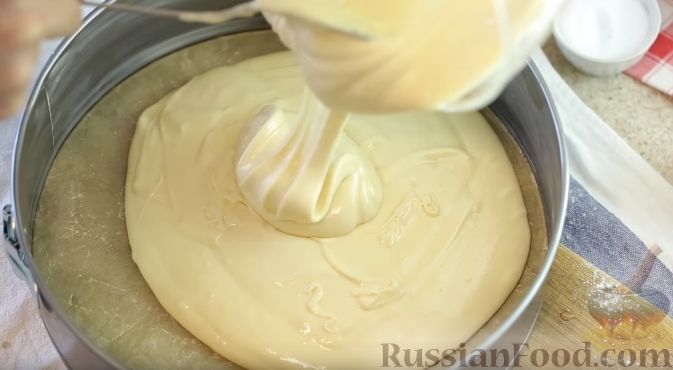Выливаем тесто в форму, покрытую пергаментом. Выпекаем в разогретой духовке при температуре 180 градусов 15-20 минут.