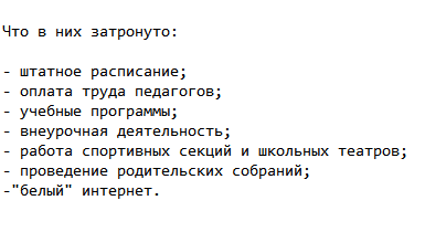 "— Суть новой редакции ФГОС — максимальная конкретизация требований к каждому из предметов школьной программы и четкое указание на конкретные знания, которые должны освоить школьники. Кроме того, новые стандарты содержат систему требований к условиям обучения, что обеспечивает равенство возможностей получения качественного образования для всех детей, независимо от места жительства и дохода семьи. Мы считаем это принципиально важным. Однако переход на новые ФГОС не предполагает ни введения новых, ни отмены существующих школьных предметов. "(министр)