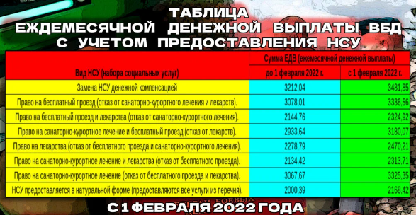 Как известно, до 1 февраля 2022 года ветераны боевых действий получали (если брать полную сумму с отказом от всего) 3 212 рублей и 04 копейки.