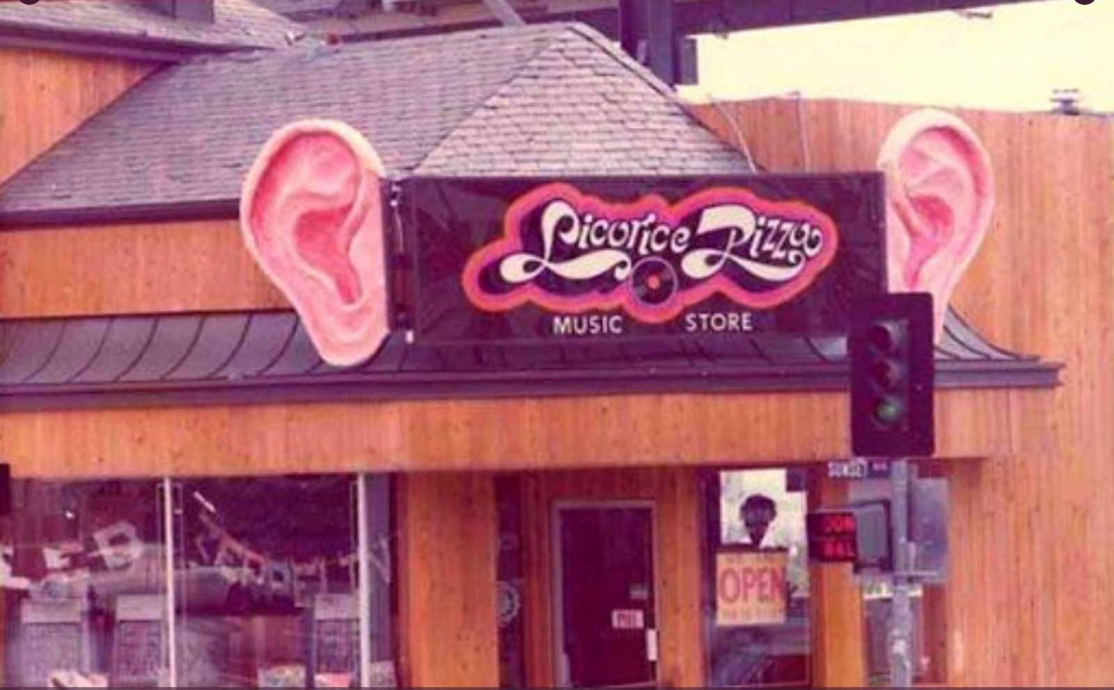 Зрители, только посмотревшие фильм, обычно задаются вопросом, откуда такое название: словосочетание «лакричная пицца» ни разу не звучит в фильме. Пол Томас Андерсон назвал фильм в честь сети магазинов музыкальных пластинок Licorice Pizza, которые были популярны в Южной Калифорнии 1970-х. Не самое обычное название отсылало к эпизоду из комедийного шоу Эбботта и Костелло, где дуэт продавал виниловые пластинки. Не преуспев, они шутят: «Мы могли окунуть дно в крахмал и продавать их как лакричную пиццу».