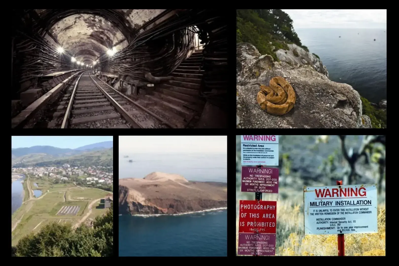 Суртсей — это вулканический остров, расположенный у южного побережья Исландии. Он был образован в результате извержения вулкана, которое началось в 1963 году и закончилось в 1967 году. Людям нельзя посещать этот остров, даже ученым, для обеспечения естественного экологического развития без вмешательства извне. Тем не менее, этот запрет был нарушен. Так, на острове было найдено укоренившееся растение томата, которое было занесено учеными. Ох и непослушные эти ученые!Гора погоды — это центр по чрезвычайным операциям. Этот объект находится в штате Вирджиния, США. Он является одним из основных мест для переселения высокопоставленных гражданских и военных должностных лиц в случае национального бедствия.Межгорье является закрытым городом в Республике Башкортостан, Россия. Говорят, что люди, живущие в городе, выполняют сверхсекретную работу на горе Ямантау, которая предположительно служит местом дислокации ядерного оружия, российских сокровищ, и бункеров на случай войны с огромным складом угля. Но на самом деле, кто знает?