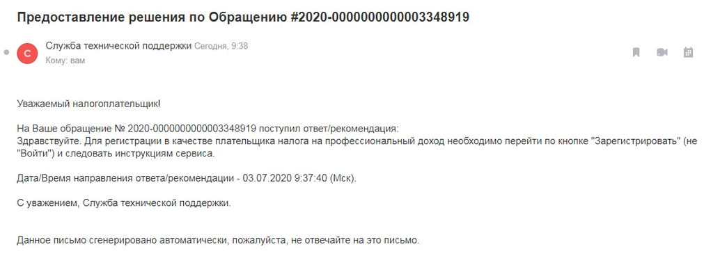 Если вам не видно скрина, сообщаю, что нам посоветовали нажать кнопочку "Зарегистрироваться", а не "войти"... И попросили не отвечать на это письмо потому, что оно отправлено автоматически...