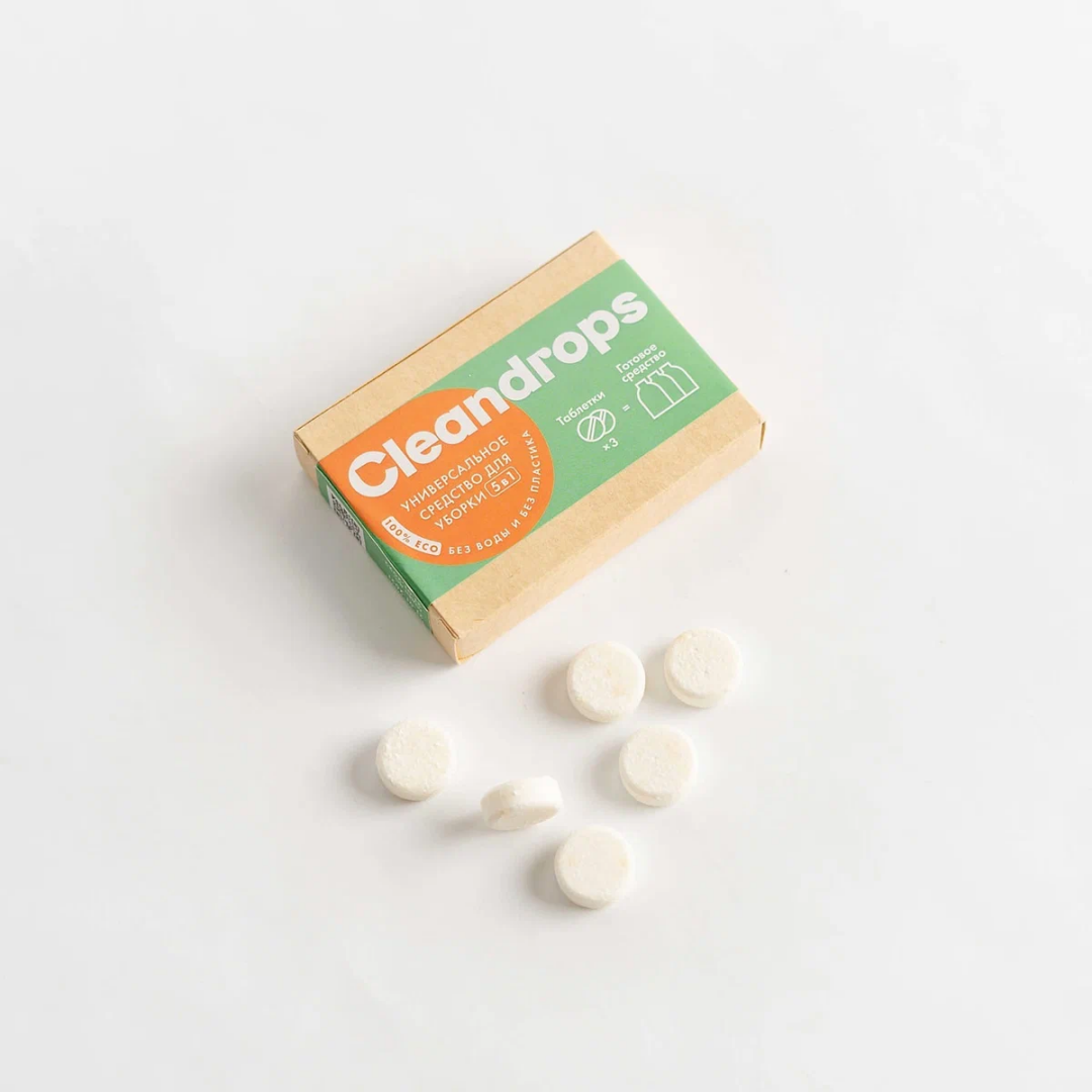 Знакомьтесь, концентраты Cleandrops в перерабатываемой упаковке в виде таблеток, которые можно растворить в воде дома и убрать раствором весь дом.