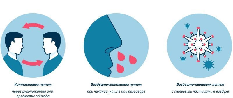 -через предметы обихода, поручни, дверные ручки, купюры, рукопожатия (контактный способ передачи).