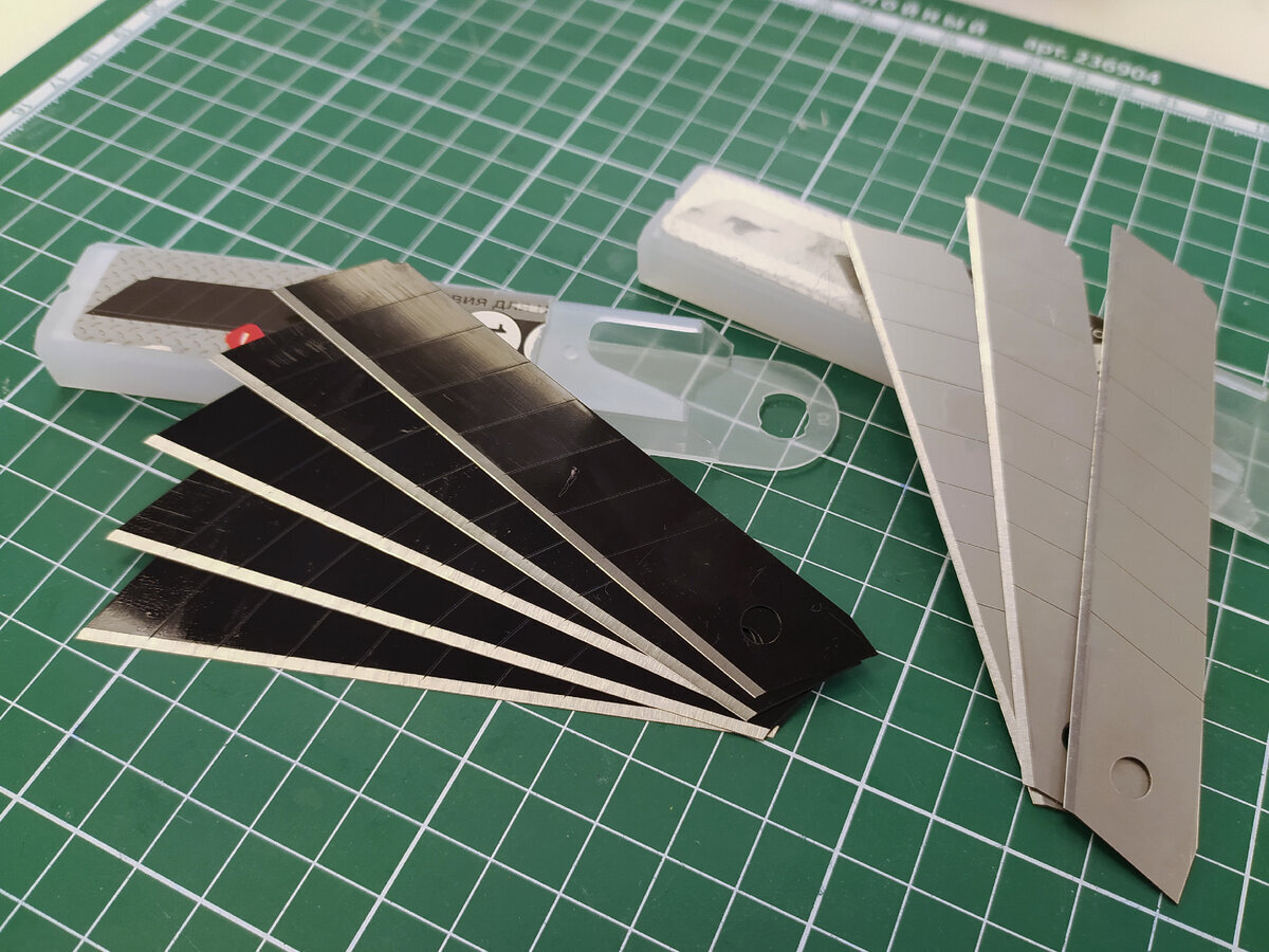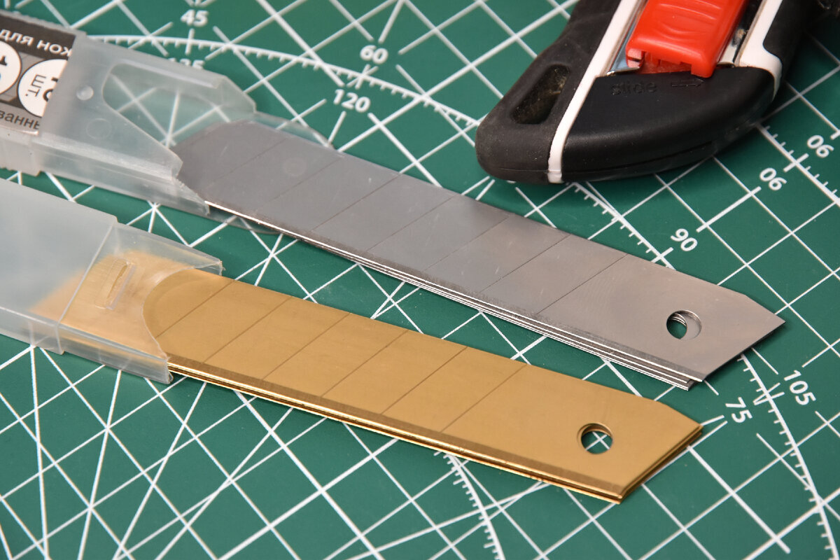 А вот жёлтенькие лезвия с покрытием из оксида титана по качеству отличаются. Но вы должны помнить один момент: если жёлтое лезвие режет мягкий материал, то оно долго не будет тупиться, но как только вы заденете за что-то типа гвоздя или железной скобки, лезвие сразу затупится. Титановое покрытие не может защитить очень тонкое лезвие от повреждения.