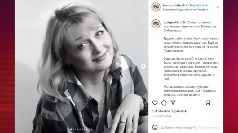 В ночь с 18 на 19 января 2022 года в возрасте 49-ти лет не стало актрисы театра и кино РФ Екатерины Сибиряковой. Первыми, кто оповестил об этом, стали ее коллеги из Московского драматического театра имени Александра Пушкина, где женщина проработала фактически три десятилетия. Причина скоропостижной смерти и дата, когда произойдет последняя встреча с актрисой еще никем не раскрывались.