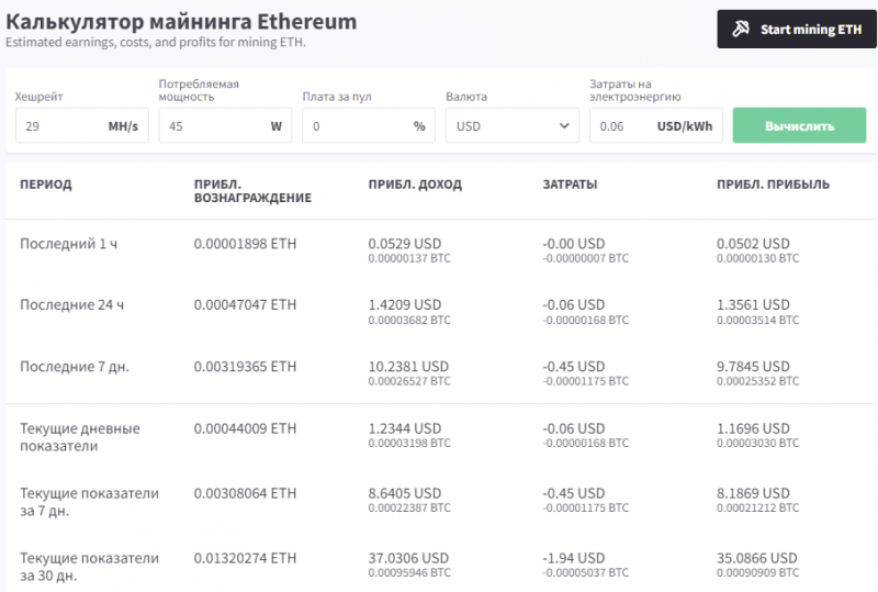 Radeon RX 6600 стоит 59 тысяч рублей. Она может предложить хешрейт 29 MH/s, потребляя при этом скромные 45 Вт. Согласно калькулятору доходности, месячный доход на такой видеокарте составит скромные 35.1 доллара или 2700 рублей. Несложно подсчитать, что сегодня одна из самых выгодных видеокарт позволяет вернуть вложения за 22 месяца или никогда, ведь впереди отказ от майнинга и переход на доказательство владения. Именно так, тот самый PoS.