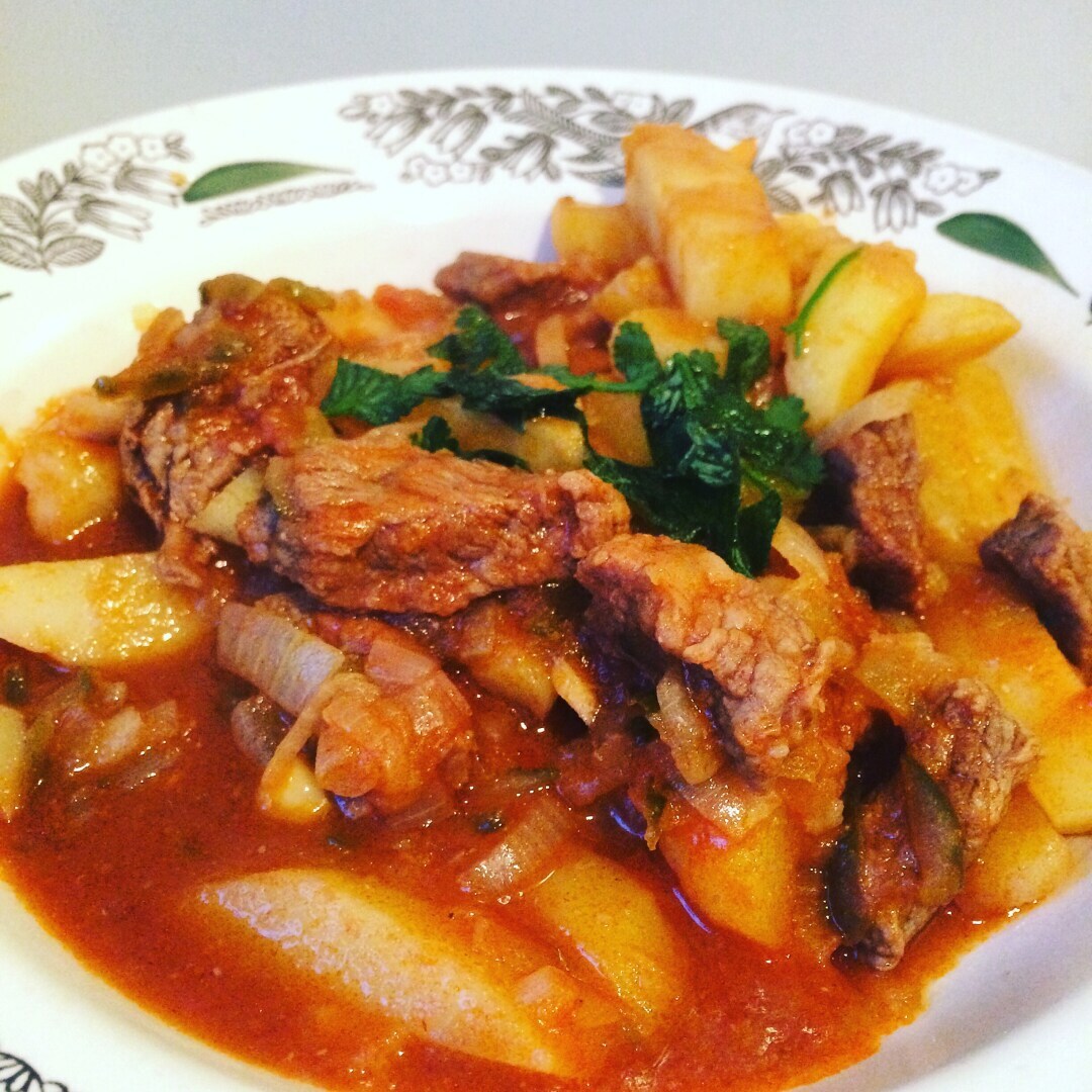 6. Осторожно перемешать и тушить картофель с мясом до готовности примерно 5-7 минут.