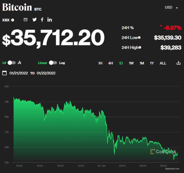 Отмечаются несколько причин отрицательной динамики цифровых активов. В частности, это резкий рост американских 10-летних облигаций и намерение ФРС увеличить процентные ставки. Инвесторы говорят, что криптовалюты фактически стали полноценными инструментами финансовых рынков, и в силу своей нестабильности они демонстрируют ту же динамику, что и любые другие активы с высокими рисками. Вслед за биткоином и Ethereum резко подешевели и другие криптовалюты, рухнули также котировки акций криптовалютных компаний: активы Coinbase Global упали в цене на 16 %, а акции MicroStrategy — на 18 %.