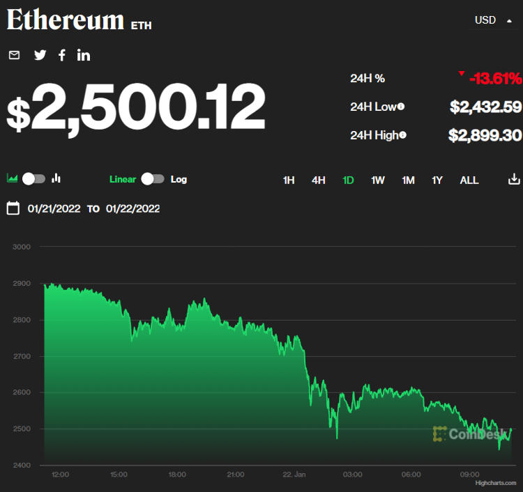 Сложившуюся ситуацию можно охарактеризовать как кризисную: две крупнейшие криптовалюты вплотную приблизились к предыдущим минимальным значениям, которые в обоих случаях пришлись на 21 июля 2021 года, когда биткоин стоил $29789,94, а за Ethereum давали $1786,45 (по данным CoinDesk). На момент написания материала стоимость биткоина составляла $35712,20, а Ethereum оценивался в $2500,12 — в последний раз близкие к этим значения наблюдались соответственно 26 июля и 4 августа. По сравнению с ноябрьскими рекордами теперешняя ситуация кажется ещё серьёзнее: биткоин подешевел на 45 %, а его рыночная капитализация снизилась на $600 млрд. Капитализация всего криптовалютного рынка с того момента просела более чем на $1 трлн.