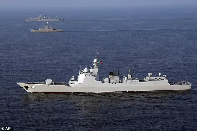 Китайская Народная Республика приняла участие в учениях с ракетным эсминцем, кораблем снабжения, вертолетами и 40 морскими пехотинцами.