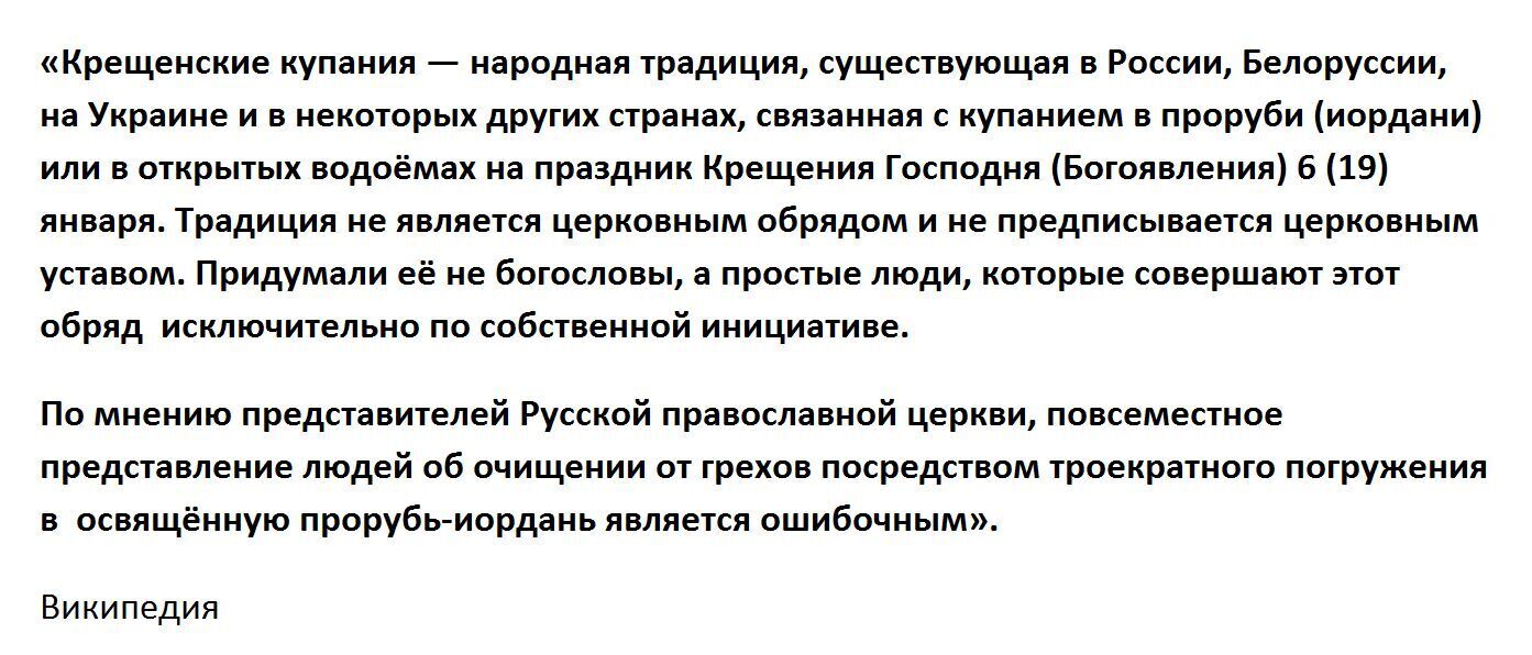 У канун празднования Крещения Господня поразило дикое количество рекламно-завлекательных объявлений с адресами и режимом работы различных купален, нырялен, бултыхален и прочих прорубей. Казалось, что вся Россия мгновенно обретя Веру и прихватив меховые плавки и лифчики, ринулась очищать свои грешные организмы в ледяной январской воде. А уж хайповых и пустых публикашек с тупыми прогнозами о нырянии Владимира Путина было просто великое множество.