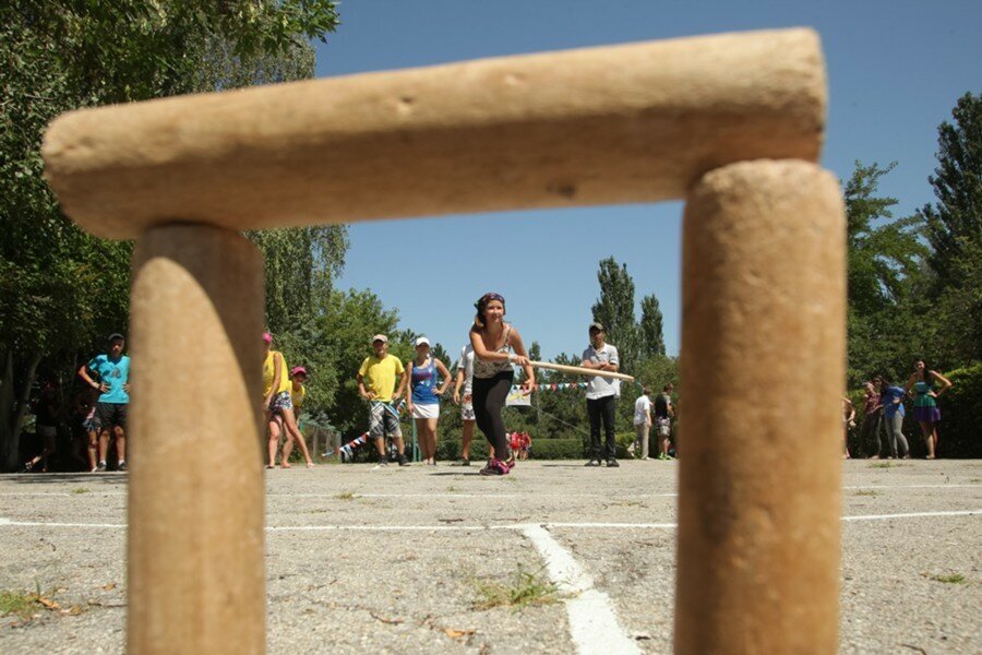 Так вот это был международный турнир в игру "Городки": приехали участвовать разные команды из различных регионов России, а также Белоруссии и Казахстана. Лука уже до этого турнира там подрабатывал, но он работал уже инструктором - показывал детям и подросткам, как правильно сбивать фигурки той самой палкой, которой "бегемот зарядил" волку в "Ну, погоди!". Что до меня, то я залез в костюм того самого бегемота и начал расхаживать на мероприятии.