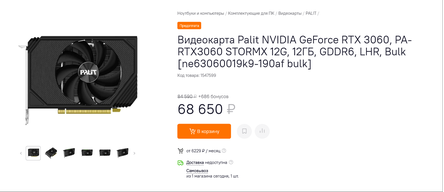 Ну а "народная" GeForce RTX 3060 в одновентиляторной версии от Palit - GeForce RTX 3060 STORMX 12G, наконец-то стоит ниже 70000 рублей.