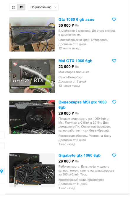 Еще один важнейший фактор - вторичный рынок уже завален видеокартами, но они никому не нужны. Пока одни майнеры пытаются продать GeForce GTX 1060 по "рыночной" цене в 30000 рублей, другие спешно сливают их за 20000-23000 рублей оптом, понимая, что через месяц они станут никому не нужны даже по 18000 рублей.