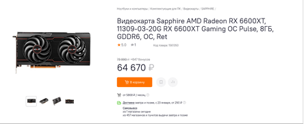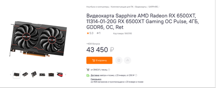 Новинка, Sapphire Radeon RX 6500XT Gaming OC Pulse, появилась в продаже и стоит 43450 рублей.
