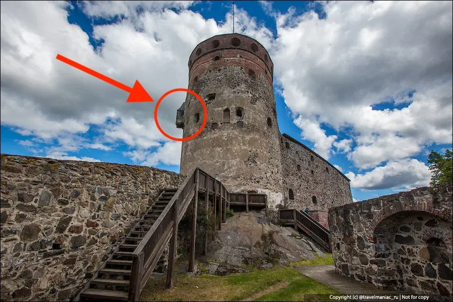 Ниша обязательно нависает либо над заполненным водой рвом, либо если рва вокруг замка не было, просто над тыльными стенами, где не проходит дорога и нет внезамковых построек.