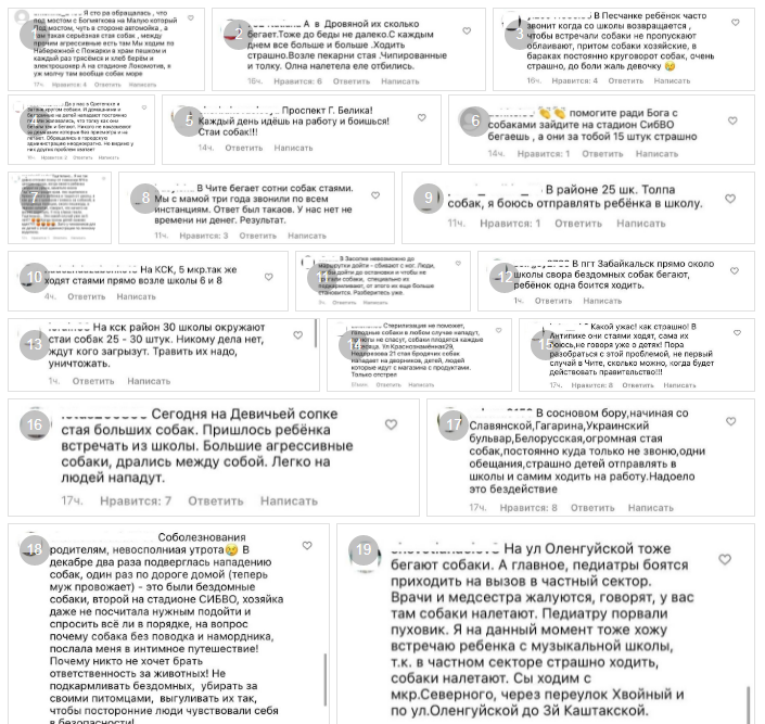 А ниже собрана лишь малая часть сообщений, которые оставили возмущённые жители Забайкалья на нашей странице в Instagram**** с жалобами на стаи бездомных собак.