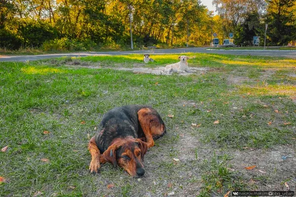 Достав из пакета парочку сарделек, мы кормим местных собак, которых в Чернобыльской зоне очень много. Все они добрые и ласковые. Бобики всегда крутятся вокруг человека и выпрашивают поесть, поэтому отказать им просто невозможно :)