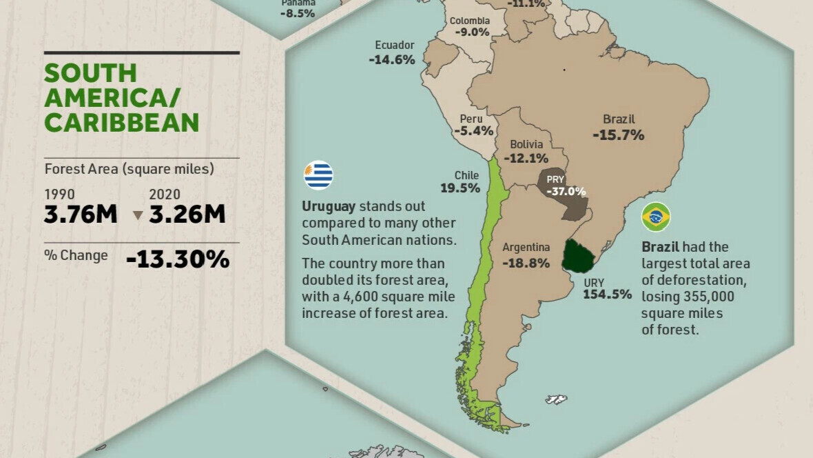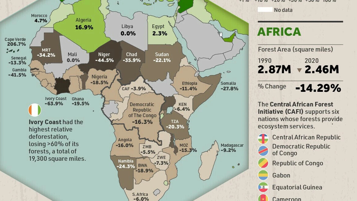Друзья, на прошедшей неделе увидел интересное исследование ООН по изменению площади лесов на планете.