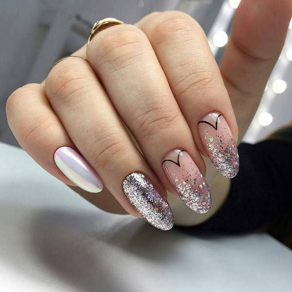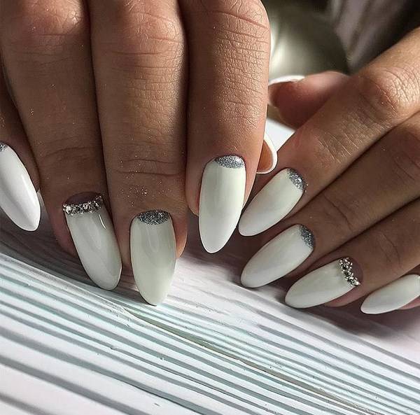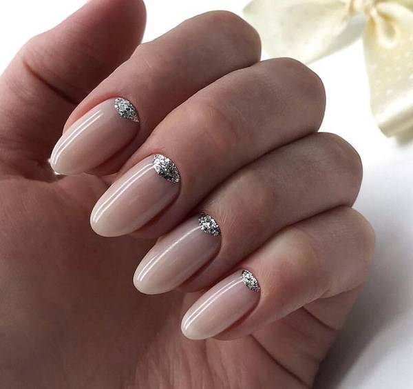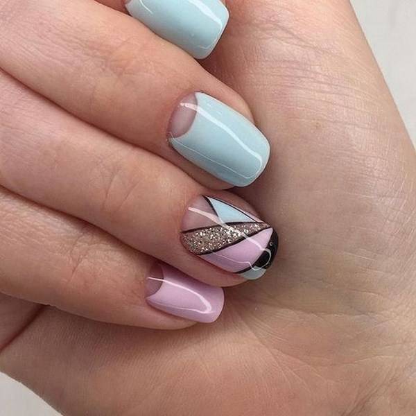 Придать лаконичность помогут треугольные и квадратные лунки с выделенным цветом. Можно дополнить все блестками.