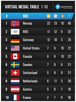 Аналитики известной компании Gracenote сделали прогноз на Олимпиаду в Пекине, расставив команды по местам, распределив все медали. Так вот, со временем он ухудшился. Ещё в ноября нам отдавали 14 золотых медалей, то к январю эксперты из США сократили количество до 11. Вот как выглядит полная таблица.
