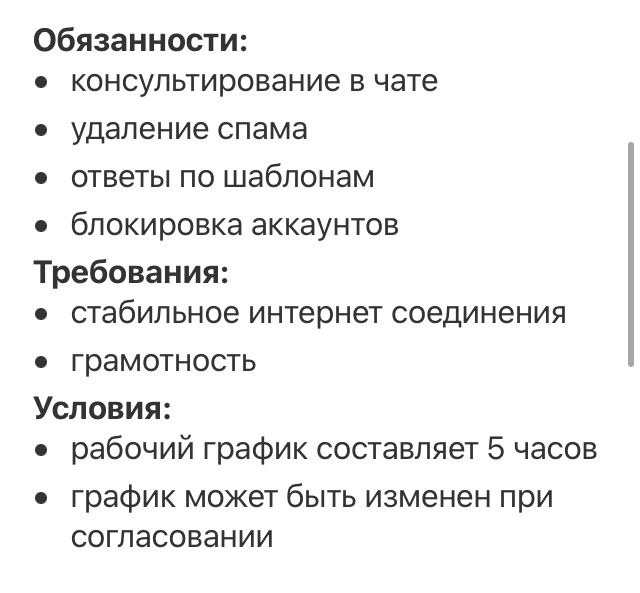 Требования минимальные – вы должны быть человеческой расы и, конечно же, питать желание зарабатывать. Но если захотите понять, чем конкретно вы будете заниматься, то ответа не найдете. Только обобщенно «обрабатывать заявки», «заполнение анкет», «общаться с клиентами». З/п выше, чем на заводе, где работают 30 часов в сутки. Ниже примеры вакансий с hh.ru и некоторых телеграм-каналов. Это стопроцентные мошенники или сетевые «бизнесмены».