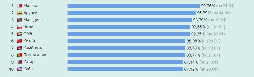Доля вакцинированного населения в разных странах