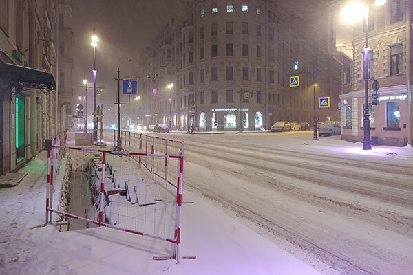 Жителей и гостей города на Неве буквально на каждом шагу подстерегает опасность: с крыш свисают сосульки, под ногами — каток, вокруг — глыбы неубранного снега. Лед сверху и лед снизу. Кто-то самолично борется с ним во дворах, взяв в руки лом. Граждане запасаются песком и посыпают дорожки. Но на одном энтузиазме далеко не уйти. Особенно опасно в центре города, где ни дворников, ни рабочих от управляющих компаний не видно неделями. Женщины с детскими коляс-ками лавируют на тротуарах-катках, пешеходы скользят вдоль зданий, поддерживая друг друга. Молодежь то там, то тут встает на коньки.