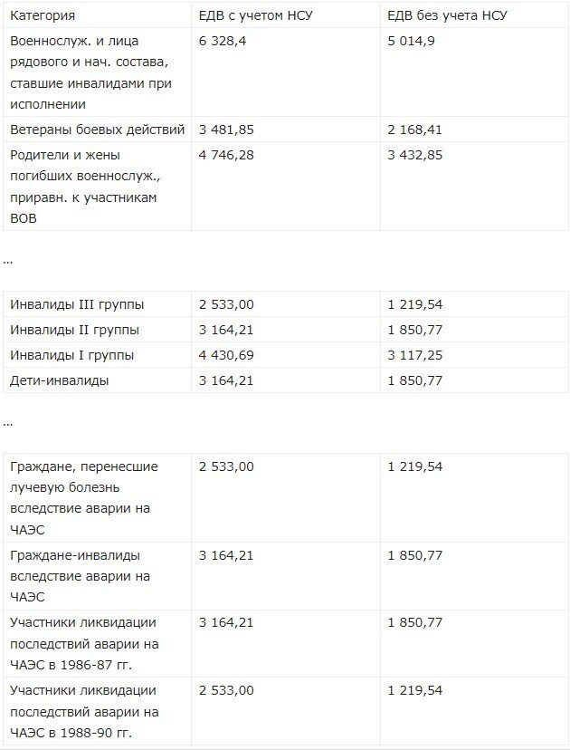 Каждый может сделать это самостоятельно. Мы тоже посчитали и составили таблицу, куда вошли новые размеры ЕДВ некоторых из 61 категории льготников.