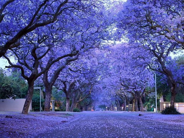 Жакаранда произошла в Южной Америке, ее долгоцветущие цветы имеют сиреневый и синий цвет. Встретить это дерево можно во многих странах мира, где зимы не очень холодные - растение выдерживает до-12 градусов по Цельсию.