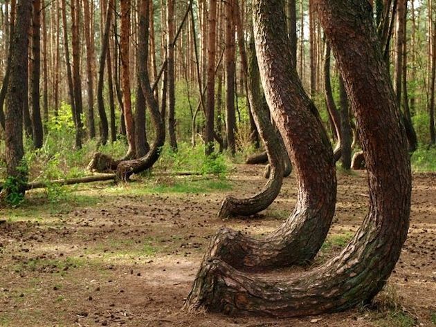 В Польше поблизости города Грыфино растет непохожий ни на какие другие места в Европе Кривой лес. Его назвали так, потому что стволы изгибаются, тем самым создавая вид сказочного леса.