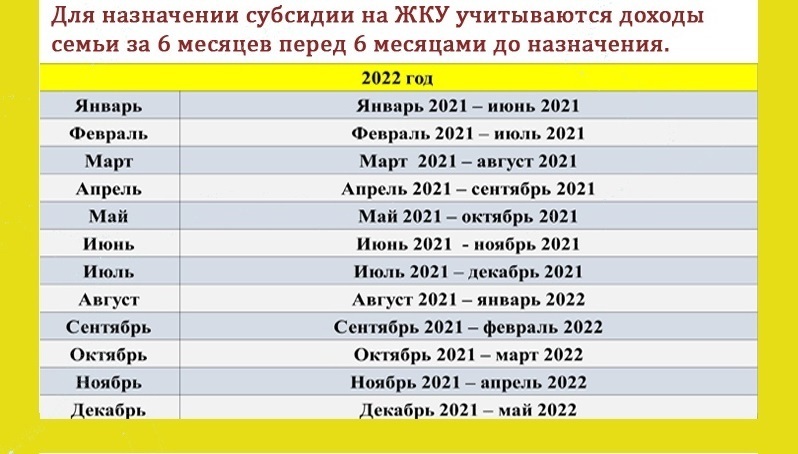 Для назначения субсидии на ЖКУ учитываются доходы семьи за 6 месяцев перед 6 месяцами до назначения