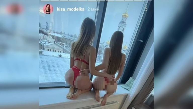 Ангелина Кузнецова, российская порнозвезда и инстаграм-модель, вызвала возмущение публики, позируя обнаженной с подругой перед окном гостиничного номера, за которым виднелась церковь.