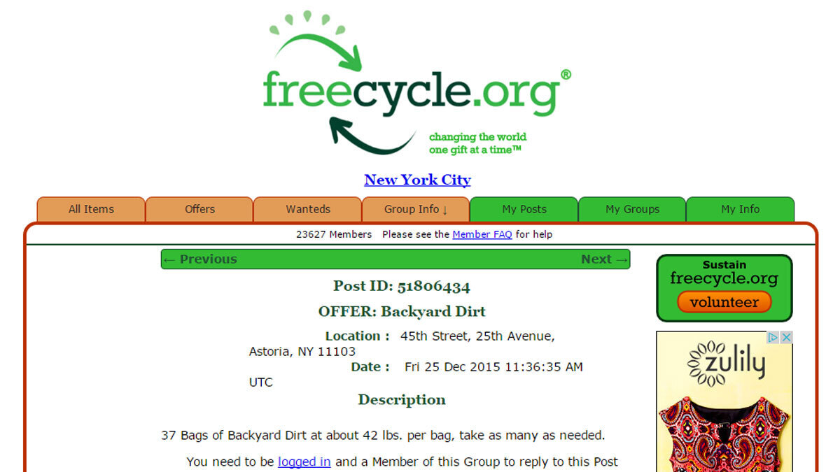 Платформа Freecycle действует по принципу онлайн-аукциона, но речь о деньгах не идет. Выигрывает «торги» чаще всего тот, кто первым откликнулся на предложение, или кому «лот» нужен сильнее.