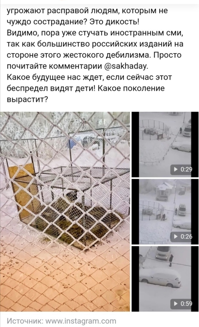 А в Якутске как сейчас содержатся ещё живые собаки — последнее фото. Более того, семейная пара забрала себе собаку. Теперь их массово травят в группах, требуя собаку убить и угрожают, что лишат родительских прав