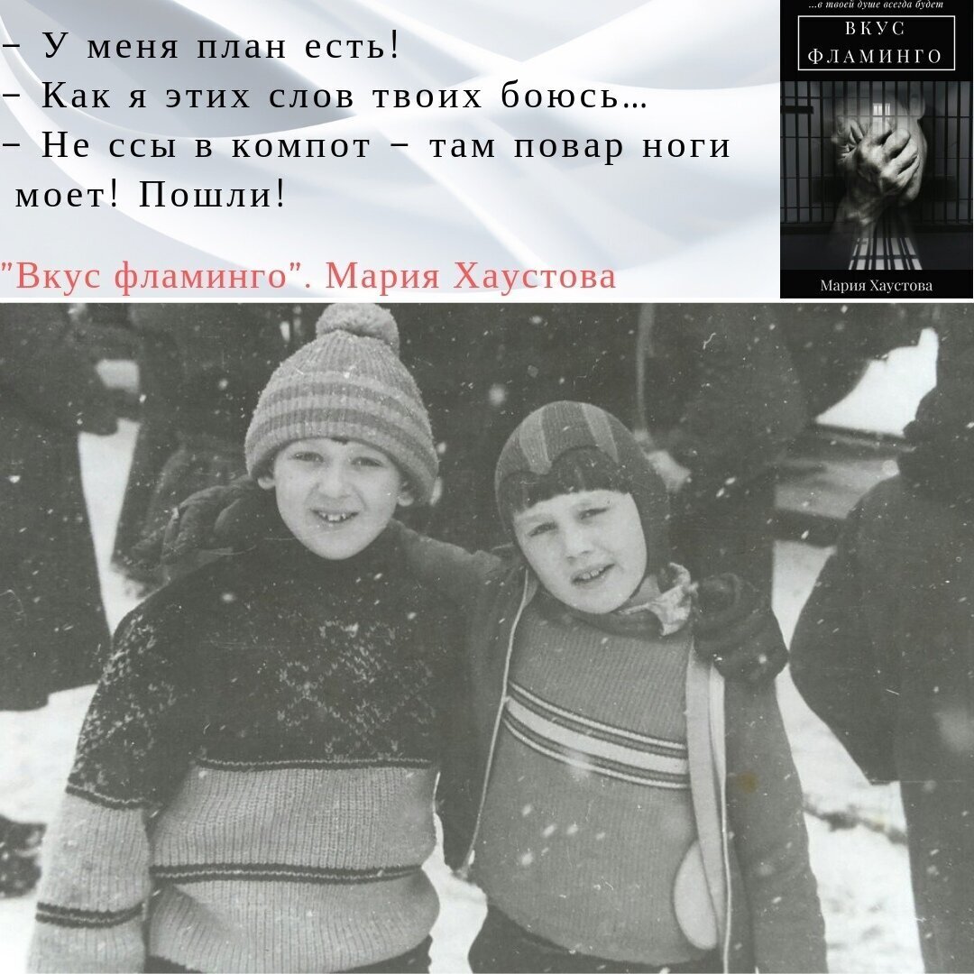 «Вкус «Фламинго» я осмысливала в течение нескольких лет, и только в 2017-м выложила всё на бумагу. Это история для мам, которые не должны повторить историю женщины, отказавшейся от своего сына. Что из этого вышло? Смотрите здесь: https://www.litres.ru/mariya-aleksandrovna-haustova/vkus-flamingo/