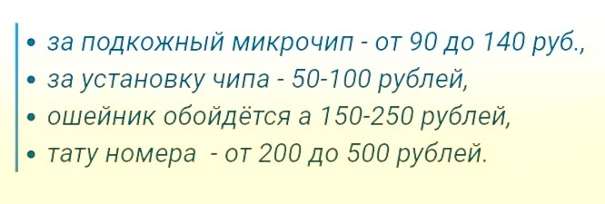 Способ чипирование хозяин животного может выбрать сам. А вот за нанесение номера животному владельцу придётся заплатить: