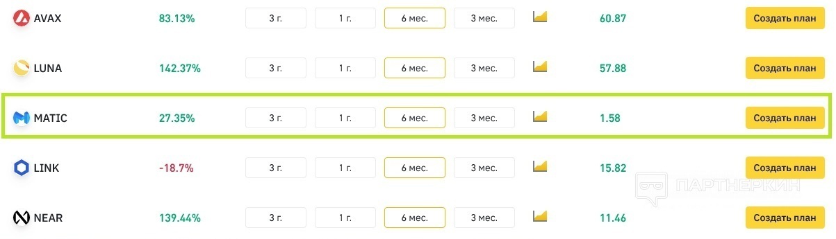 Что я бы сейчас сделал? Еще раз проанализировал все эти 12 криптовалют, которые представлены в этой инструменте и выделил бы самые перспективные из них. Дальше бы закупил на круглую сумму (к примеру на $500 или $1000) этой криптовалюты и активировал бы план на 6-12 мес. По факту, потерять в деньгах на всем этом, нужно еще постараться, но кто знает, какая цена будет в будущем, потому нужно анализировать и выбирать наилучший вариант. Для себя понял, что это «Polygon (Matic)», но вы сами можете проанализировать все доступные криптовалюте в этом инструменте автонвестирования и принять уже верное решения.