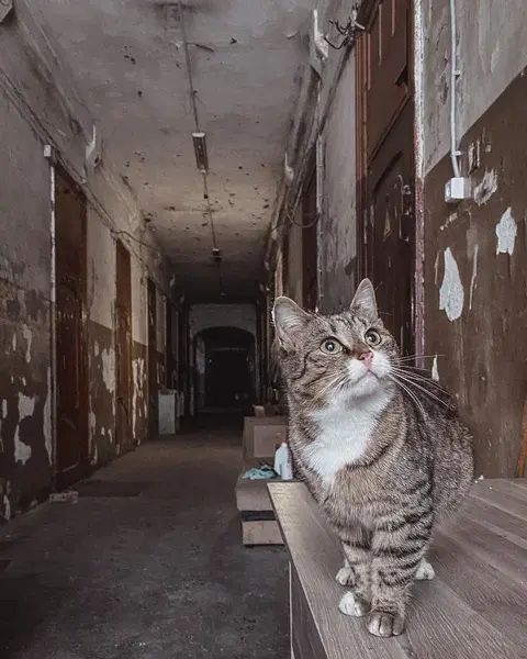 Все четыре этажа жилые и попасть в коридор со множеством комнат так же не составляет труда. Заходи дорогой гость и бери, что хочешь. Хотя брать то тут особо нечего. Если только местного доброго котейку с собой увезти, чтобы спасти его от этих диких условий.