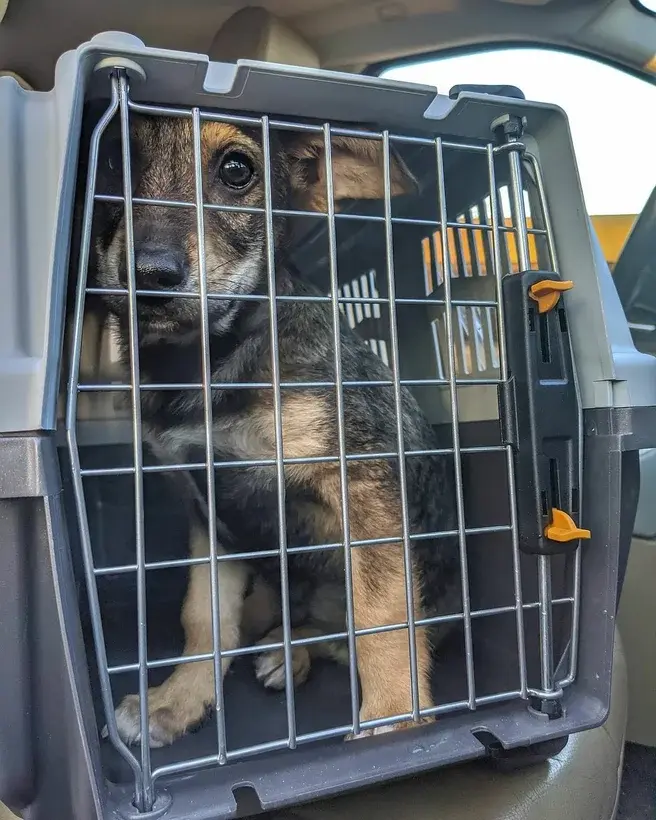 Старая переноска была вся замотана скотчем, и кто-то внутри очень хотел вырваться на свободу. Девушка открыла дверцу и увидела внутри крошечного щенка; он трясся и скулил. Щенок был очень тощ и явно сильно обезвожен. Конечно, девушка — волонтерка зооприюта Furry States — не осталась безразличной. Она забрала малыша и переноску с собой. Перед тем, как уезжать, спасительница подошла к работникам заправки: она хотела узнать, сколько времени здесь простояла переноска, чтобы понять, насколько сильно обезвожен и истощен щенок, насколько серьезные меры потребуются. Но сотрудники уверили ее, что впервые слышат про переноску.