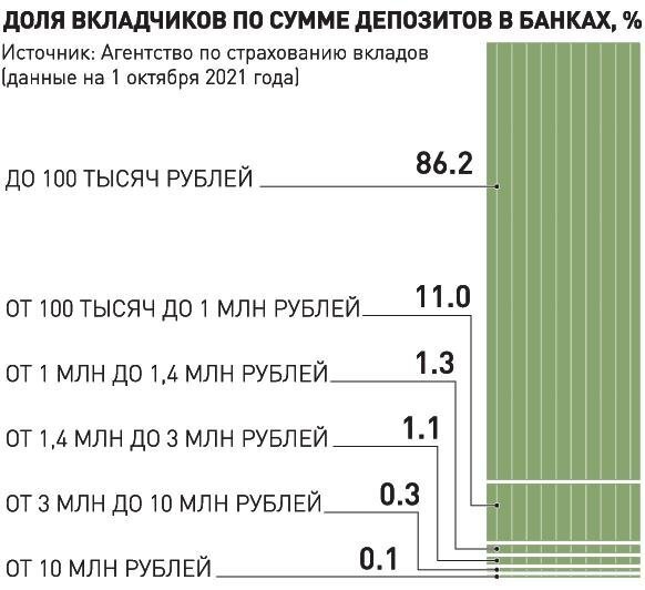 Де-юре в России налогообложение процентов, полученных с банковских вкладов, действует с 1 января 2021 года. Но впервые налог на доходы физлиц (НДФЛ, ставка 13%) с них будет уплачиваться владельцами вкладов в конце 2022 года по процентам, полученным за 2021 год. Необлагаемая сумма рассчитывается по формуле: 1 млн рублей умножается на ключевую ставку ЦБ на 1 января данного года. "То есть главное - это именно сумма дохода от вкладов за год, так как размер вклада и ставка могут нивелировать эффект друг друга", - подчеркнули в ФНС.