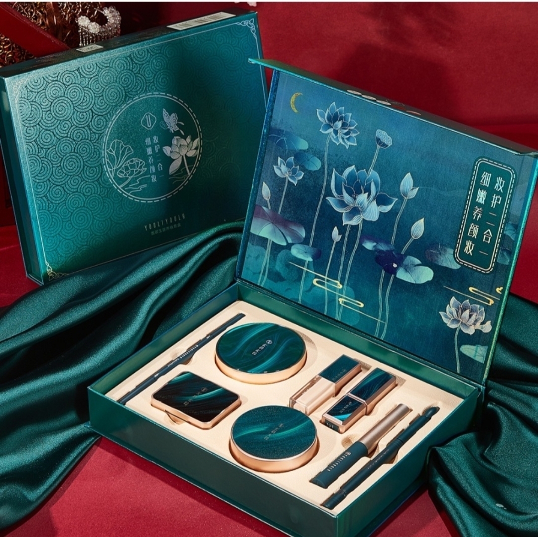 Китайский бренд YOULIYOULA представляет набор декоративной косметики, упакованной в изящную упаковку цвета морской волны. В комплект входят пудра для макияжа, ВВ крем, губная помада, тушь для ресниц, консилер для лица, тени для век, подводка для глаз и карандаш для бровей. Такой подарок несомненно понравится каждой женщине.