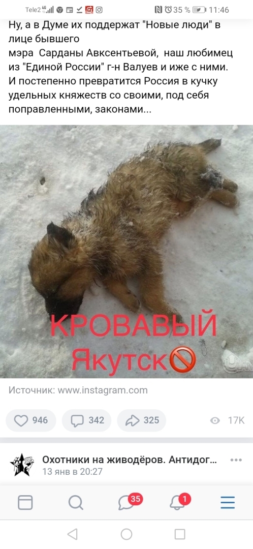 ..."Откуда псина появилась?"... А вот это и есть главный вопрос, отодвинутый в сторону дебатами "можно или нельзя отстреливать". Поэтому и депутат фекалиями изошел в праведном гневе, пытаясь зоозащитников назначить крайними и ответственными за наличие бродячих собак. Собственно, своими воплями цели достиг: поднял волну, люди устремились на тотальную ликвидацию животных и травлю их защитников. А так-то в компетенции этого хрена было решение вопроса, если в реальности существовали стаи одичавших собак. Такая стая правда очень опасна, и следовало меры принять, а не ждать трагедии. А то спят в оглоблях, а потом в припадке бьются, требуя расстрела людей, которые как раз и пытаются не допустить одичания животных, забирая в приюты (существующие на пожертвования, а не за бюджет) и пристраивая в добрые руки.