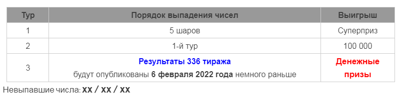 Тиражная таблица 336 тиража